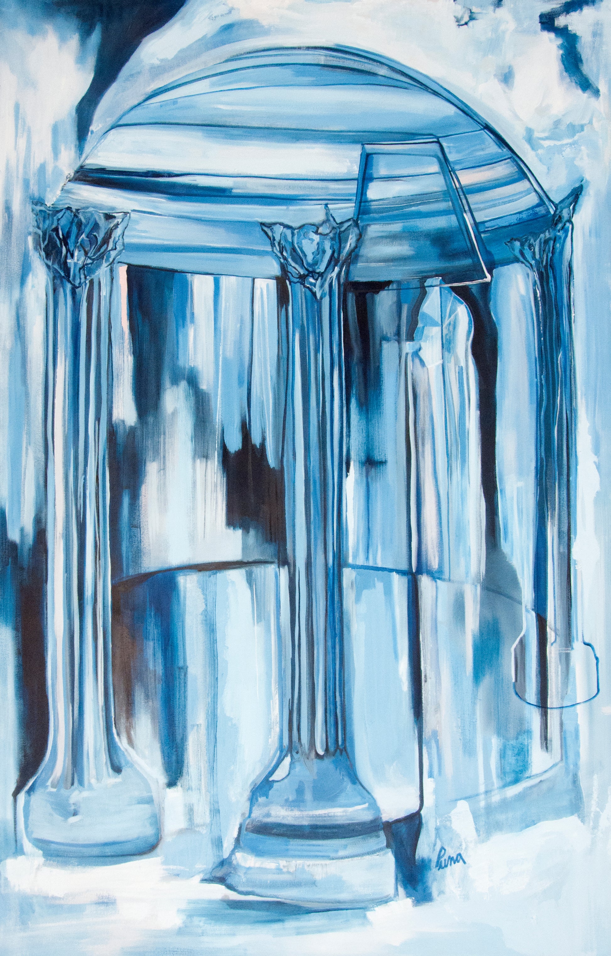 This painting reflects my personal understanding of death—not as a locked, finite chamber, but as a transparent, calm passage. The classicizing mausoleum at its center is not a monument to loss, but a symbol of transition. In its quiet architecture, I found peace. I am forever with my Maker.