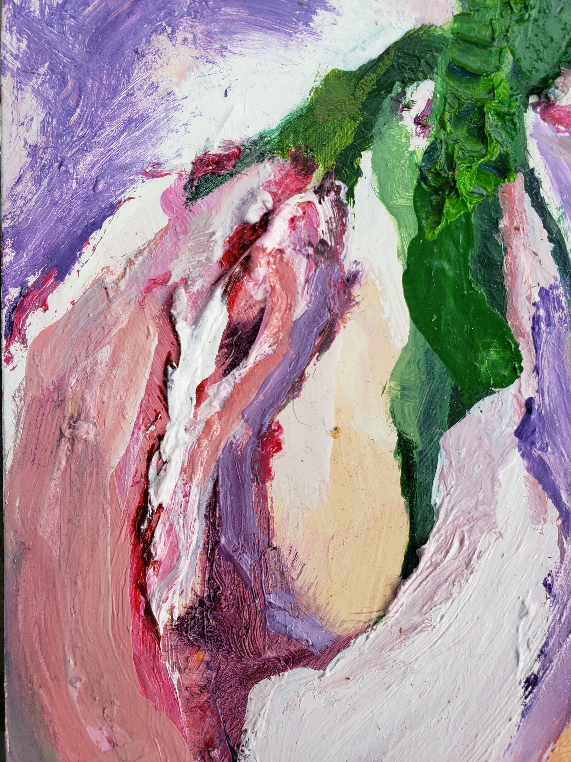 I Am Already Loved is a petite original oil painting on panel featuring my favorite flower—the Stargazer Lily. During the grieving process, I began buying flowers for myself regularly, and this painting grew from one of those quiet, healing moments. As I painted in a rich impasto style, I listened to a beautiful song by the Maverick City Music that reminded me of my worth as a child of God. The lyrics echoed in my heart: “for the lilies of the field are more finely dressed than all, and they worry not.” This floral still life painting is a tender expression of faith, comfort, and self-love. It’s perfect for art collectors, spiritual art lovers, and anyone seeking a meaningful Stargazer Lily painting for sale that radiates peace and divine reassurance.