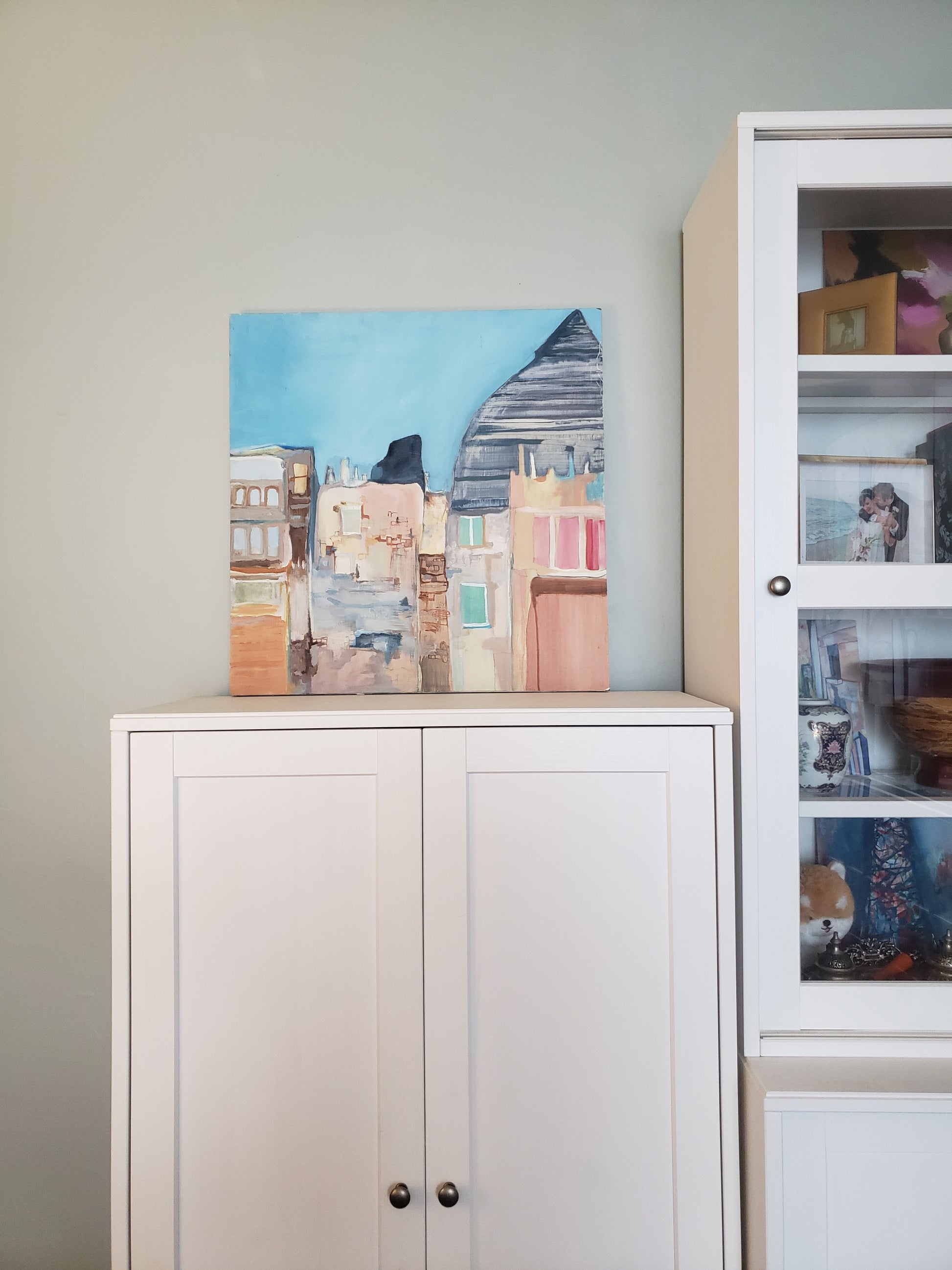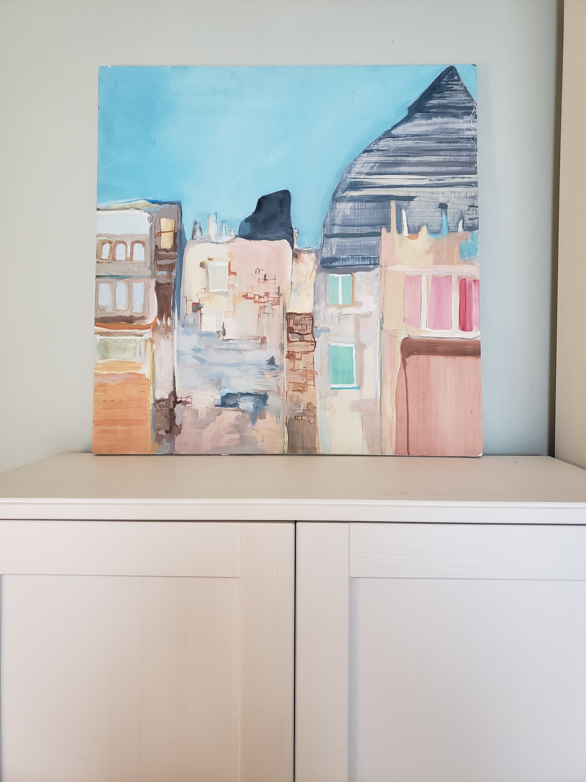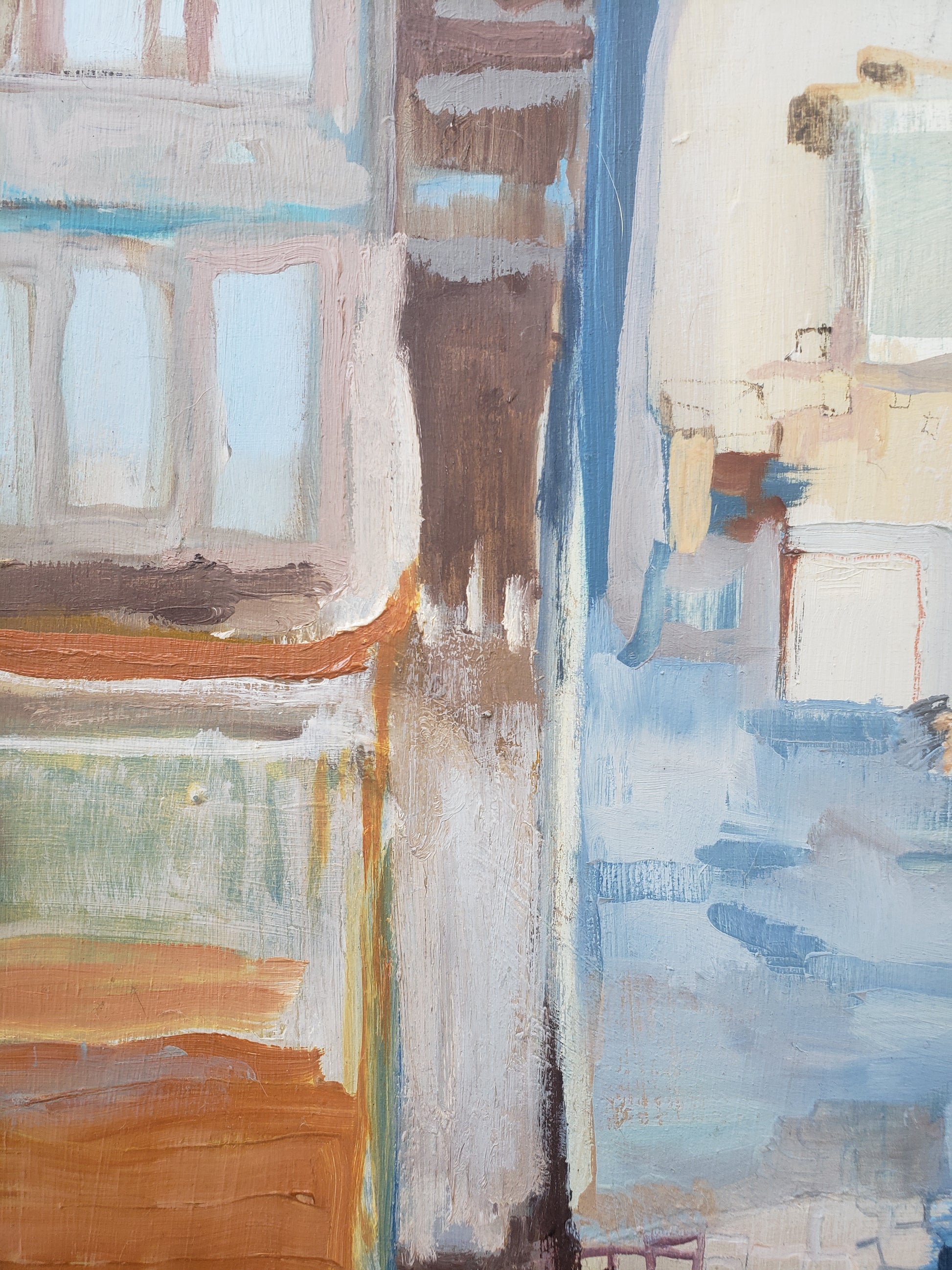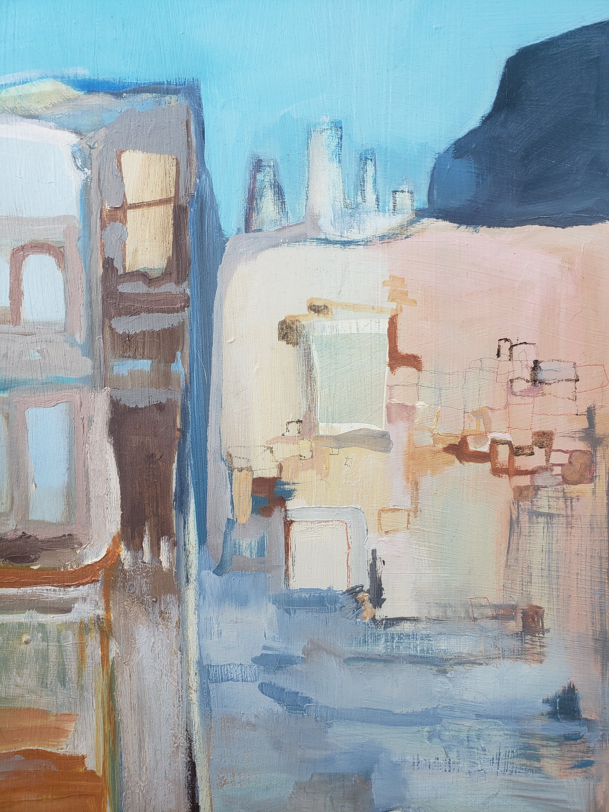 For me this painting rings like a colorful journal entry. My View is one of my most personal original oil paintings, rooted in the drawings I made while living in Paris with my uncle’s family. From my bedroom window in the 16th arrondissement along Passy, I watched the Eiffel Tower rise gracefully among the blue-grey Mansard rooftops—a panorama that still fills me with awe. That time in Paris sparked a creative fire in me, and this Paris rooftop painting carries the vibrant memories of color and composition that shaped my work. Painted in oil on board, it features thinner, more precise mark-making than my usual canvas pieces, offering a refined and intimate glimpse into how I saw and felt that enchanting cityscape. Enjoy this heartfelt tribute to a place that continues to inspire me.