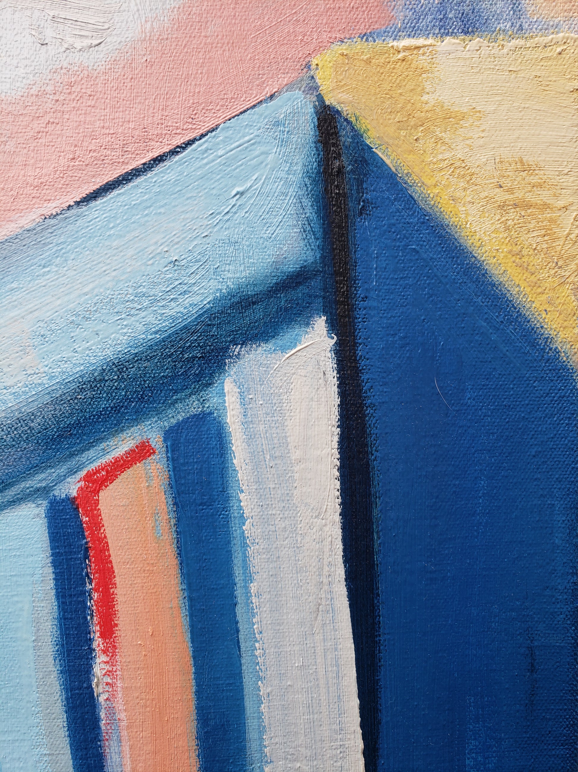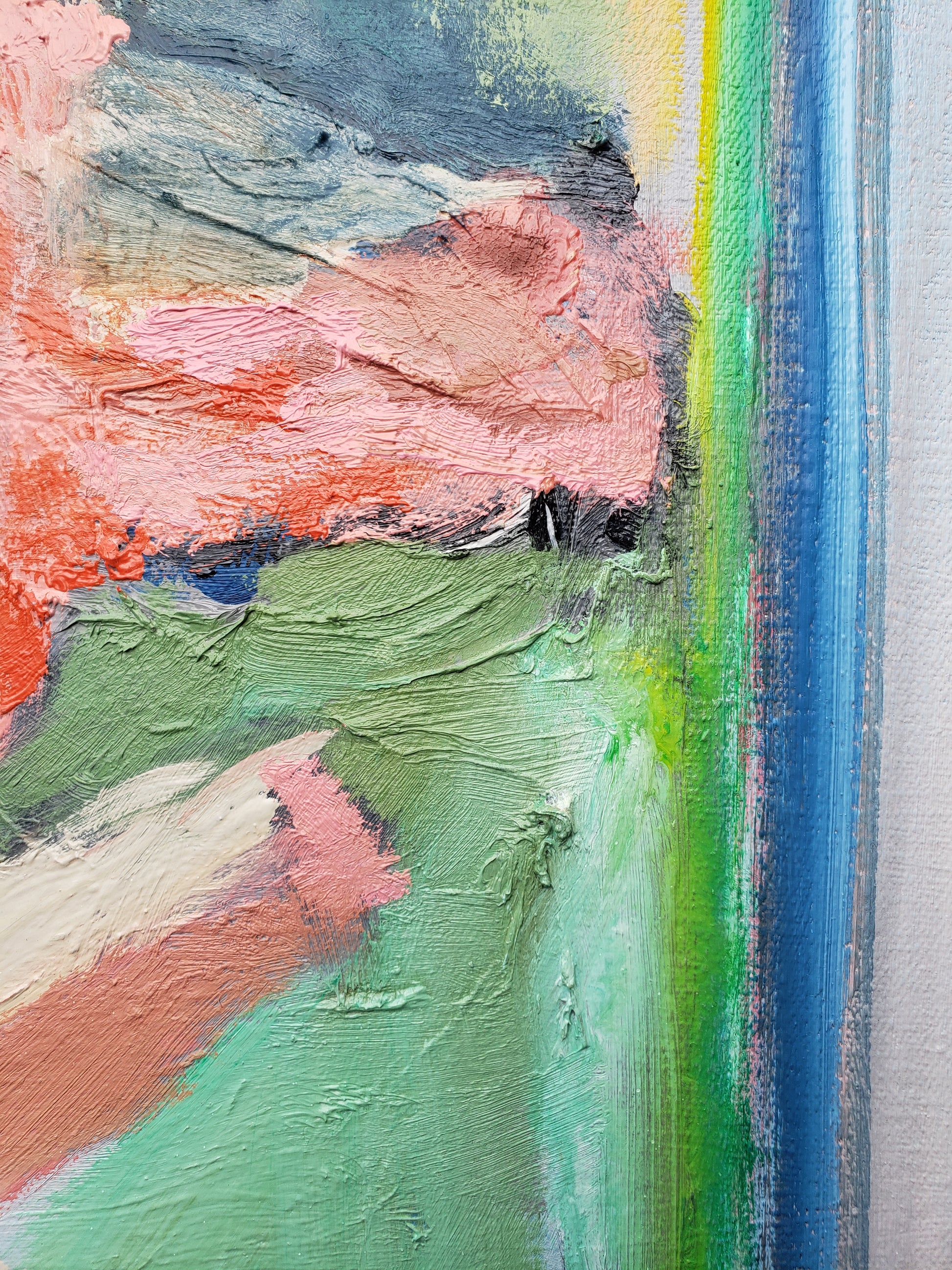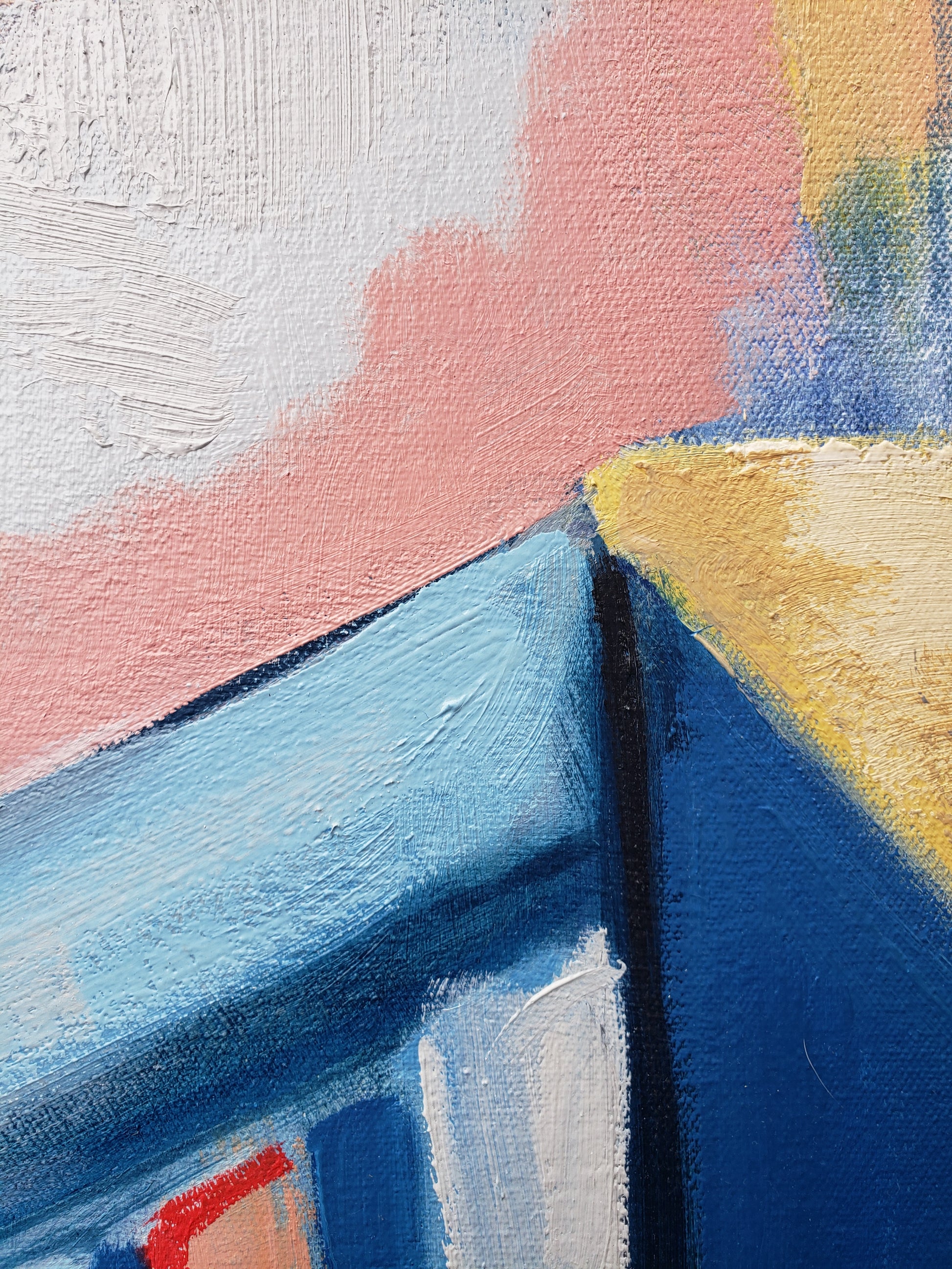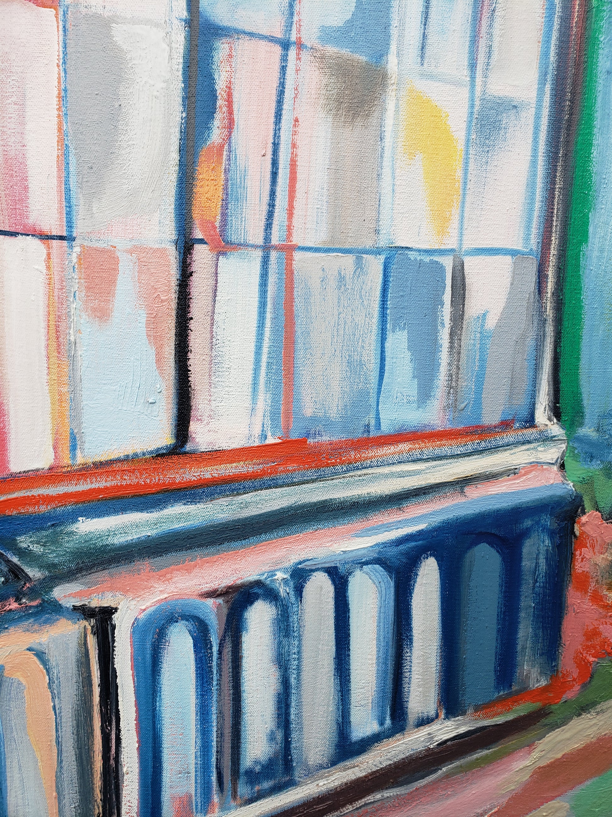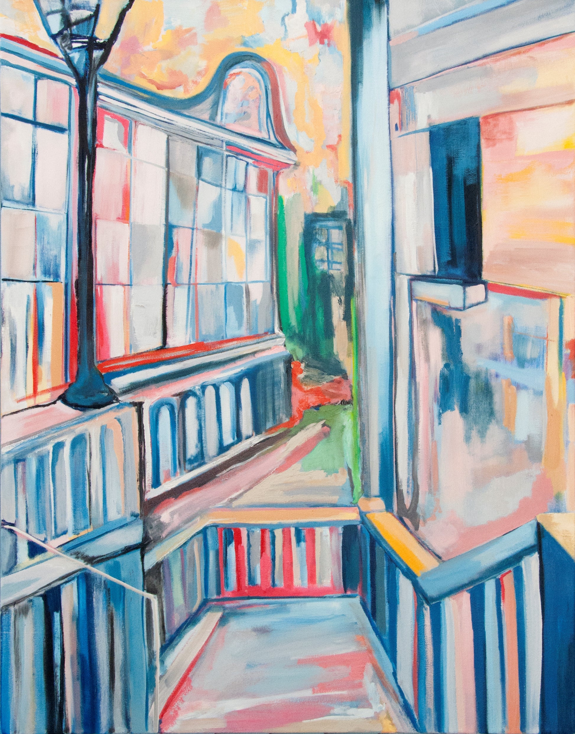 Paris Street is a statement painting for someone who loves color and loves the city. One of my largest works in the Paris series, I created this from a photograph I took while living in Paris with my uncle after graduate school. I spent my days walking the city, sketching on paper, and sitting on a pillow to soften the cold cobblestones as the gracious Parisians passed by. This Paris street scene painting captures the quiet magic of those afternoons—the soft light reflecting off the white buildings, the sense of peace that replaced all pressure and ambition. I feel the Fauves and the Impressionist painters in this canvas, as I love their city so.