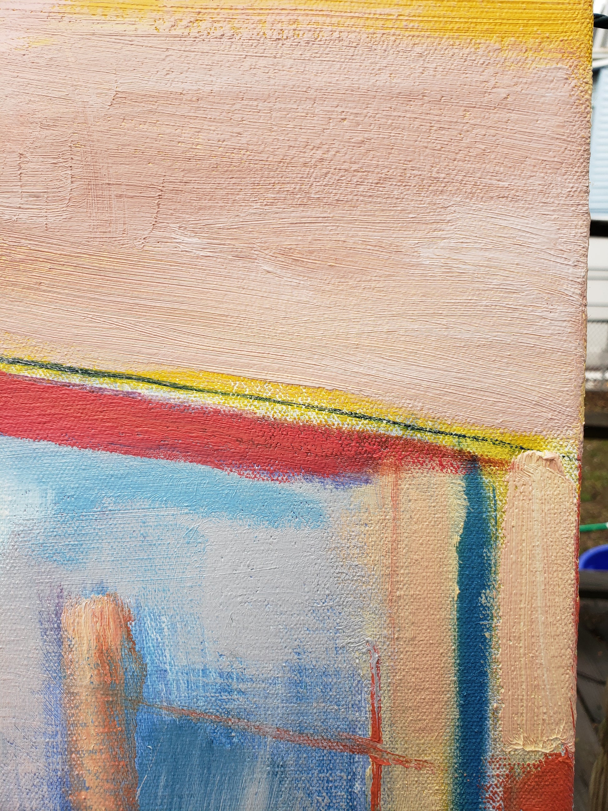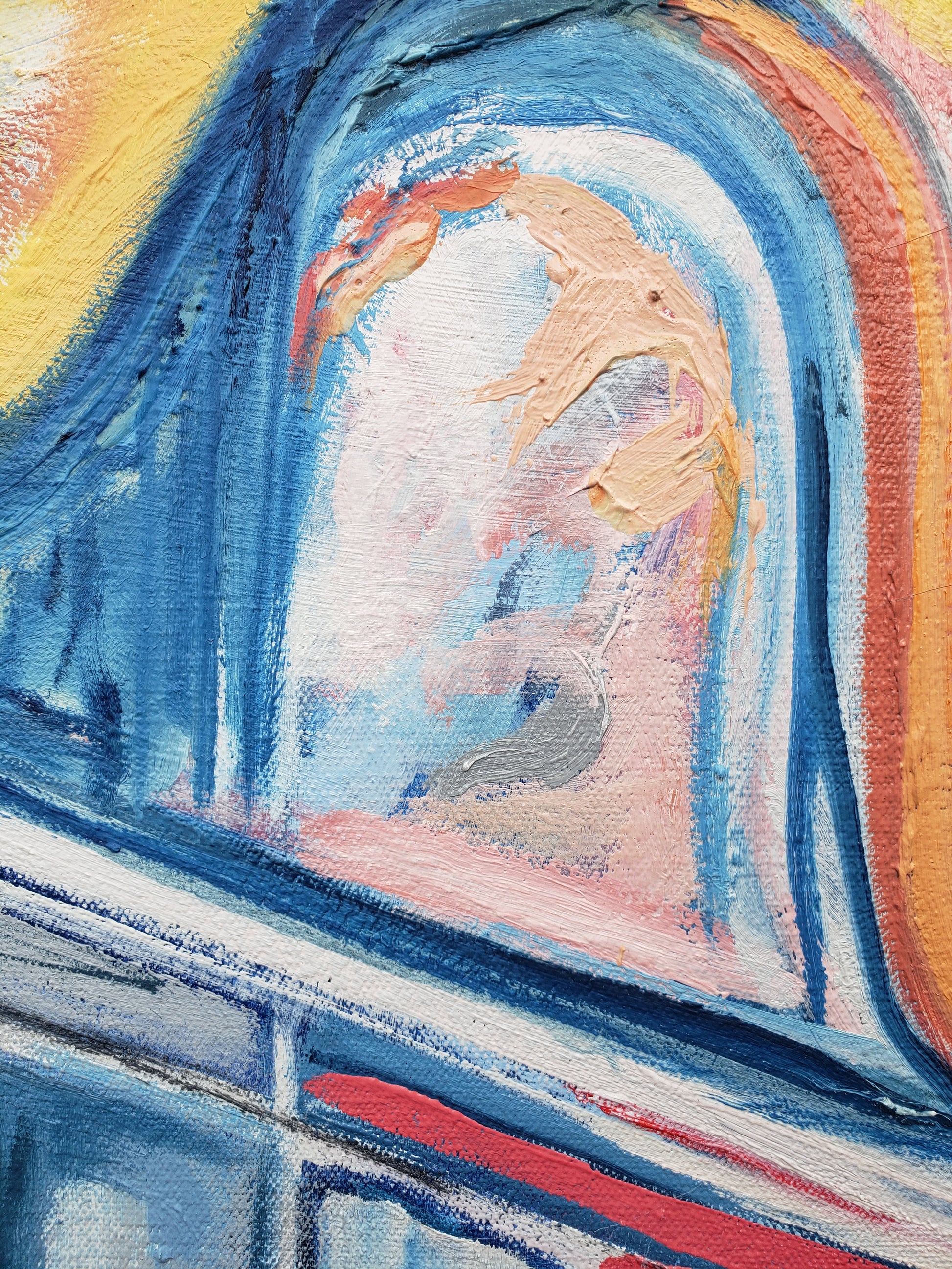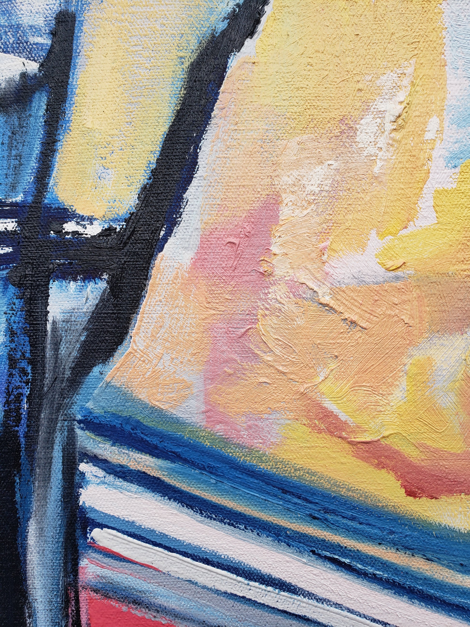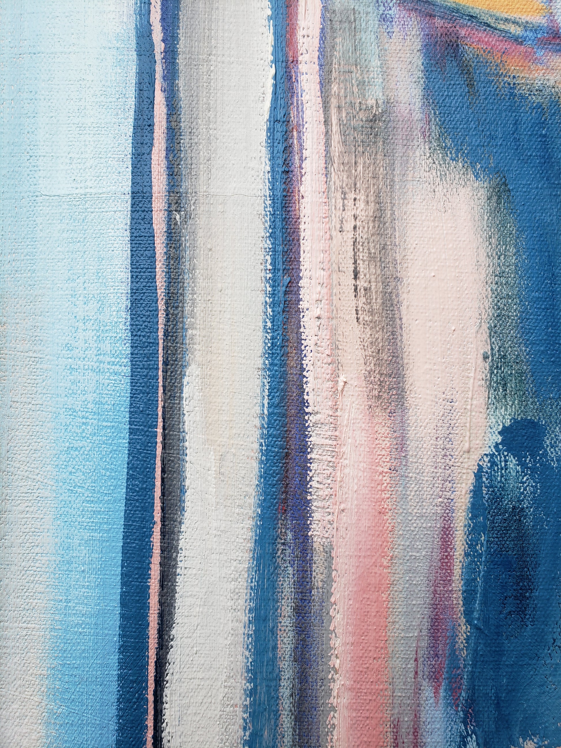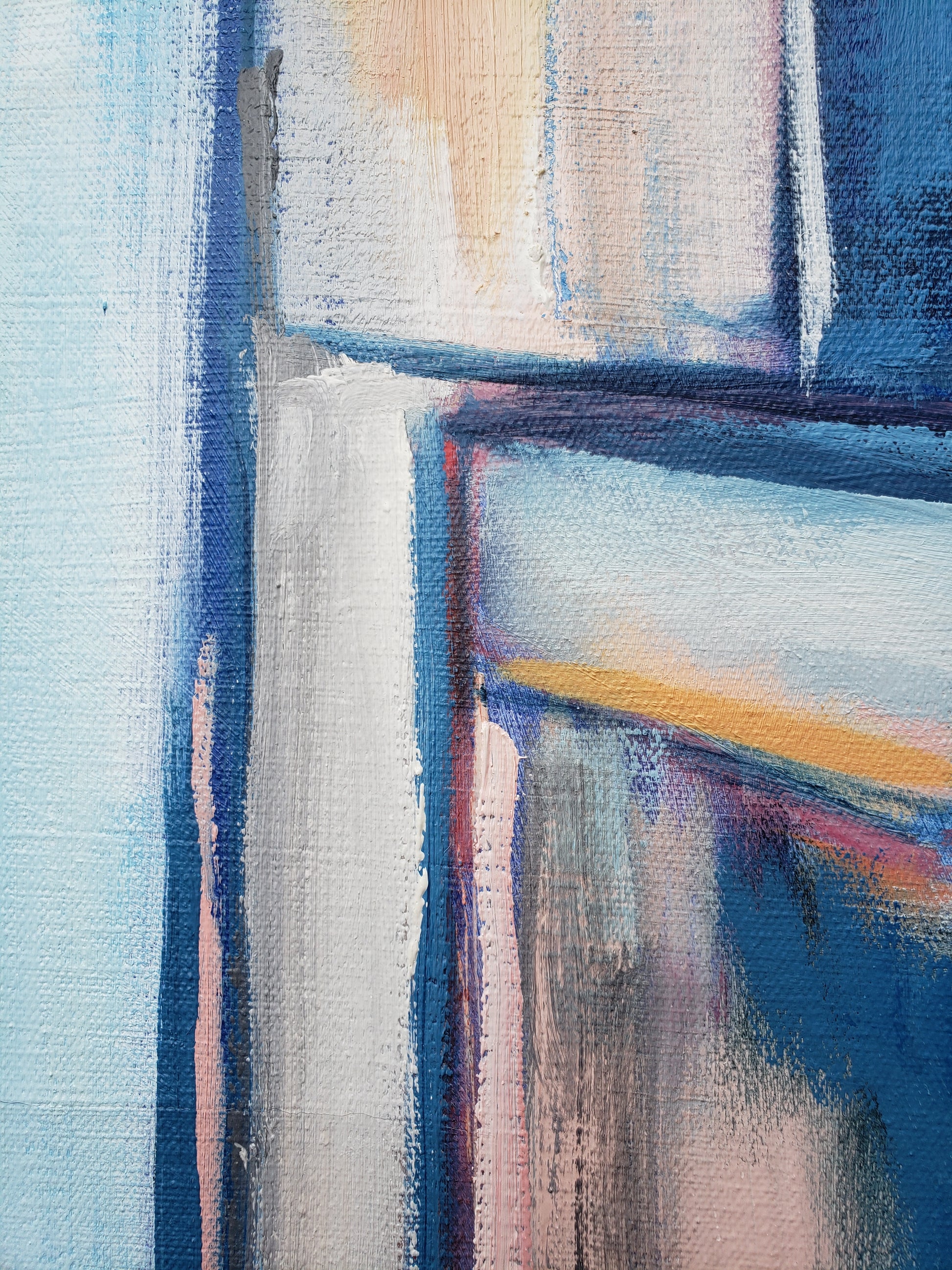 Paris Street is a statement painting for someone who loves color and loves the city. One of my largest works in the Paris series, I created this from a photograph I took while living in Paris with my uncle after graduate school. I spent my days walking the city, sketching on paper, and sitting on a pillow to soften the cold cobblestones as the gracious Parisians passed by. This Paris street scene painting captures the quiet magic of those afternoons—the soft light reflecting off the white buildings, the sense of peace that replaced all pressure and ambition. I feel the Fauves and the Impressionist painters in this canvas, as I love their city so.
