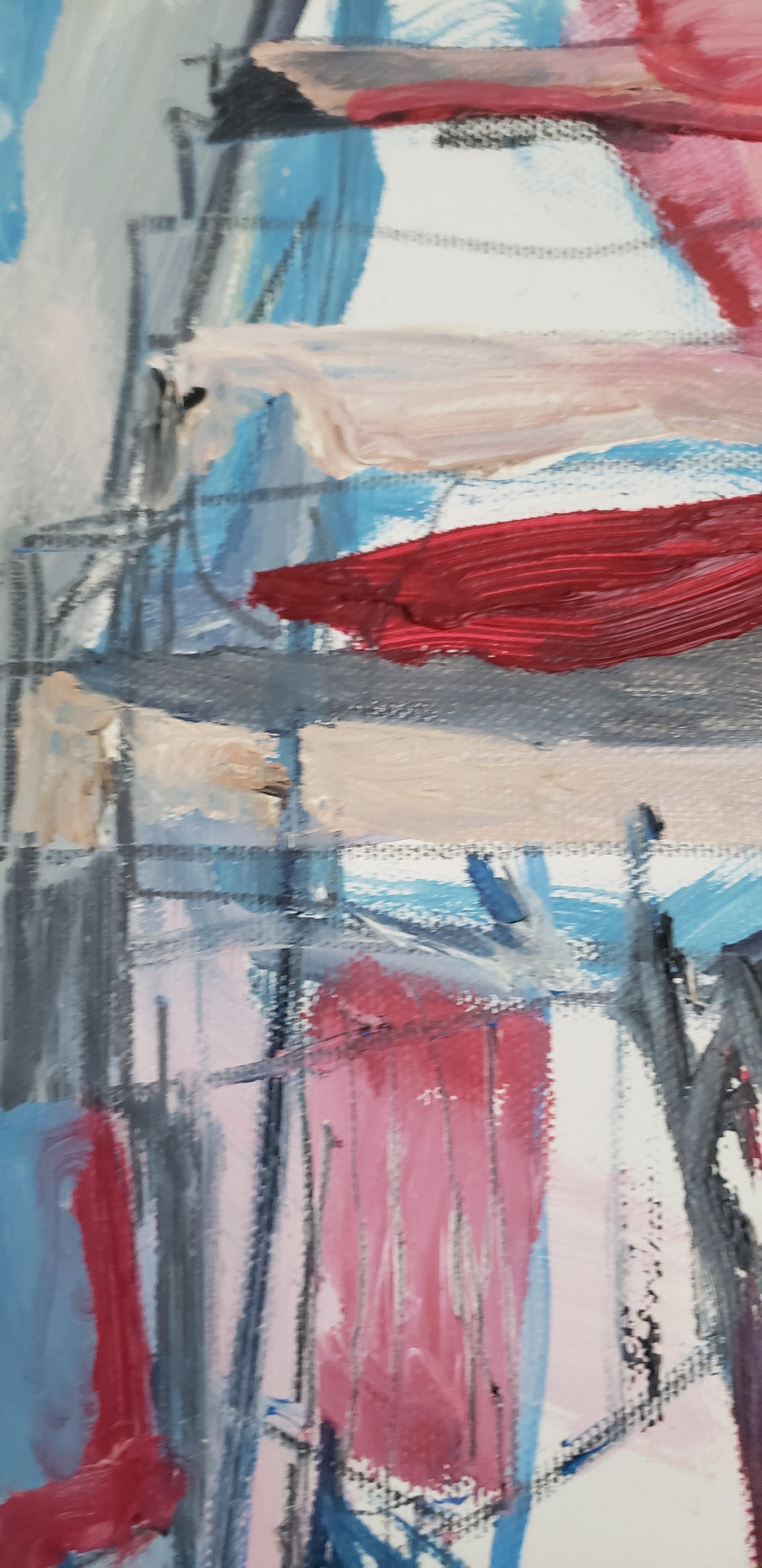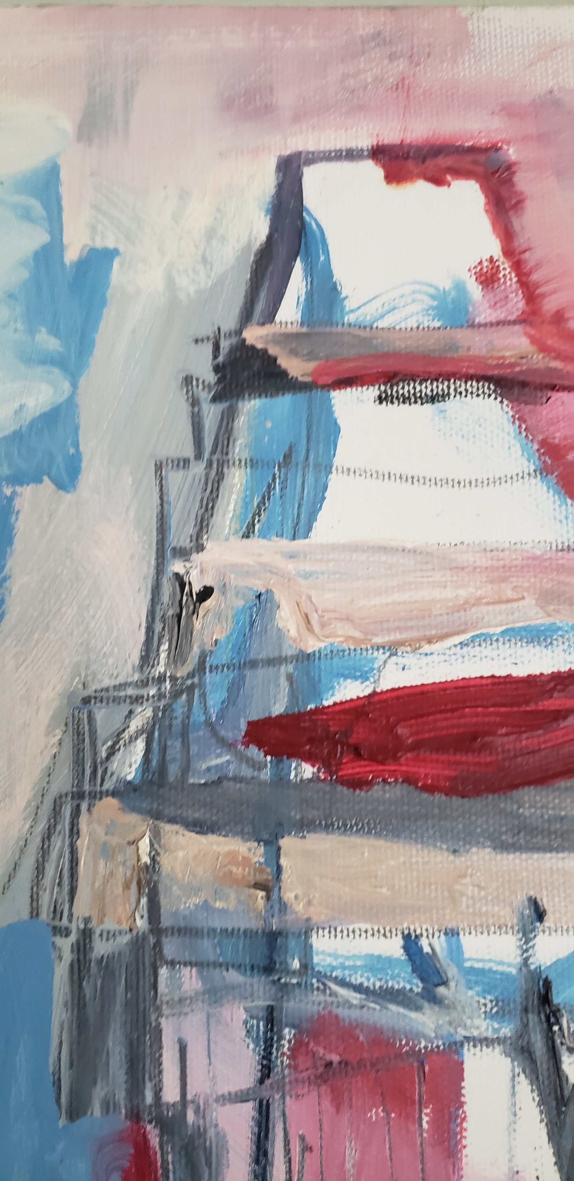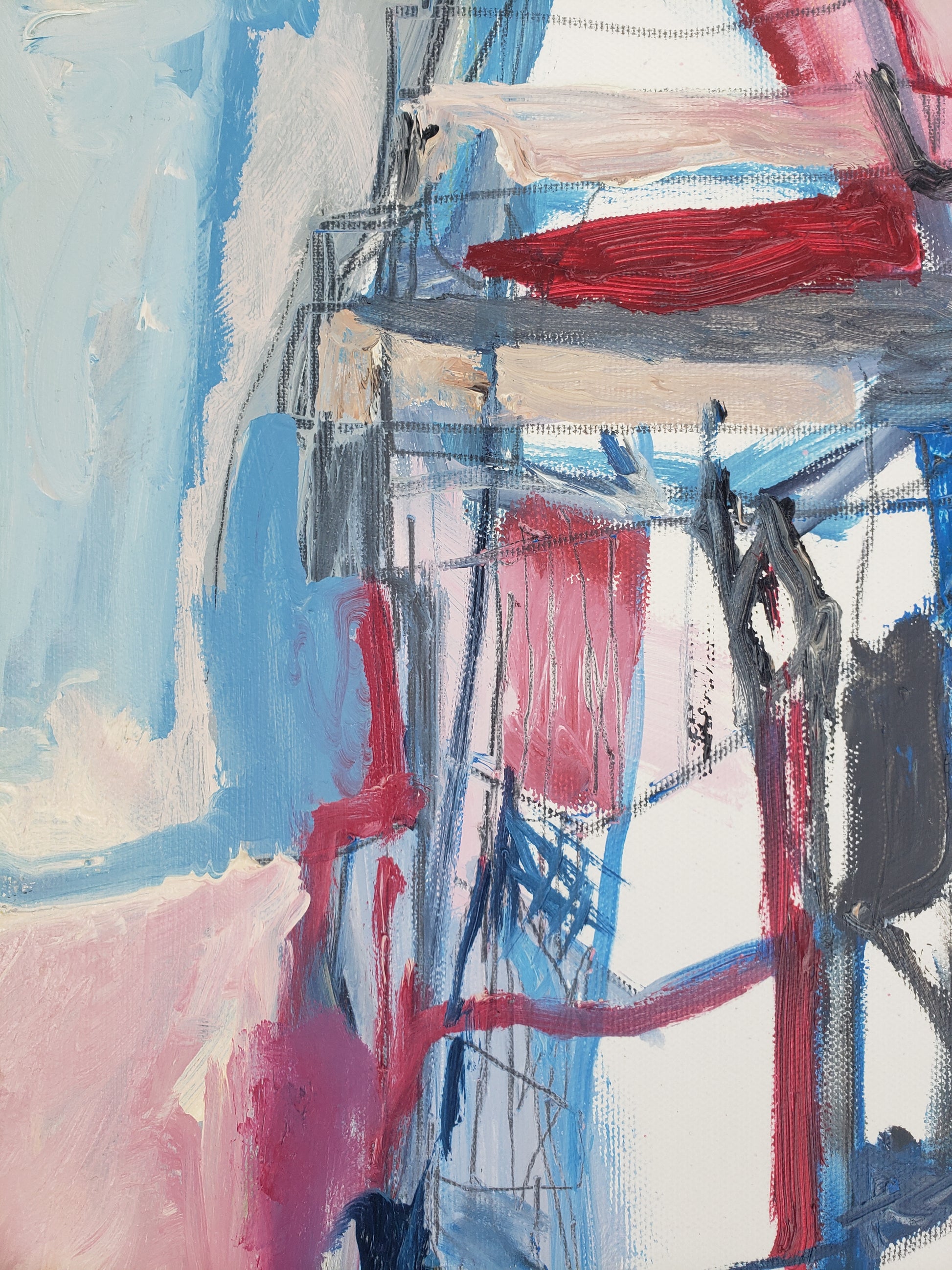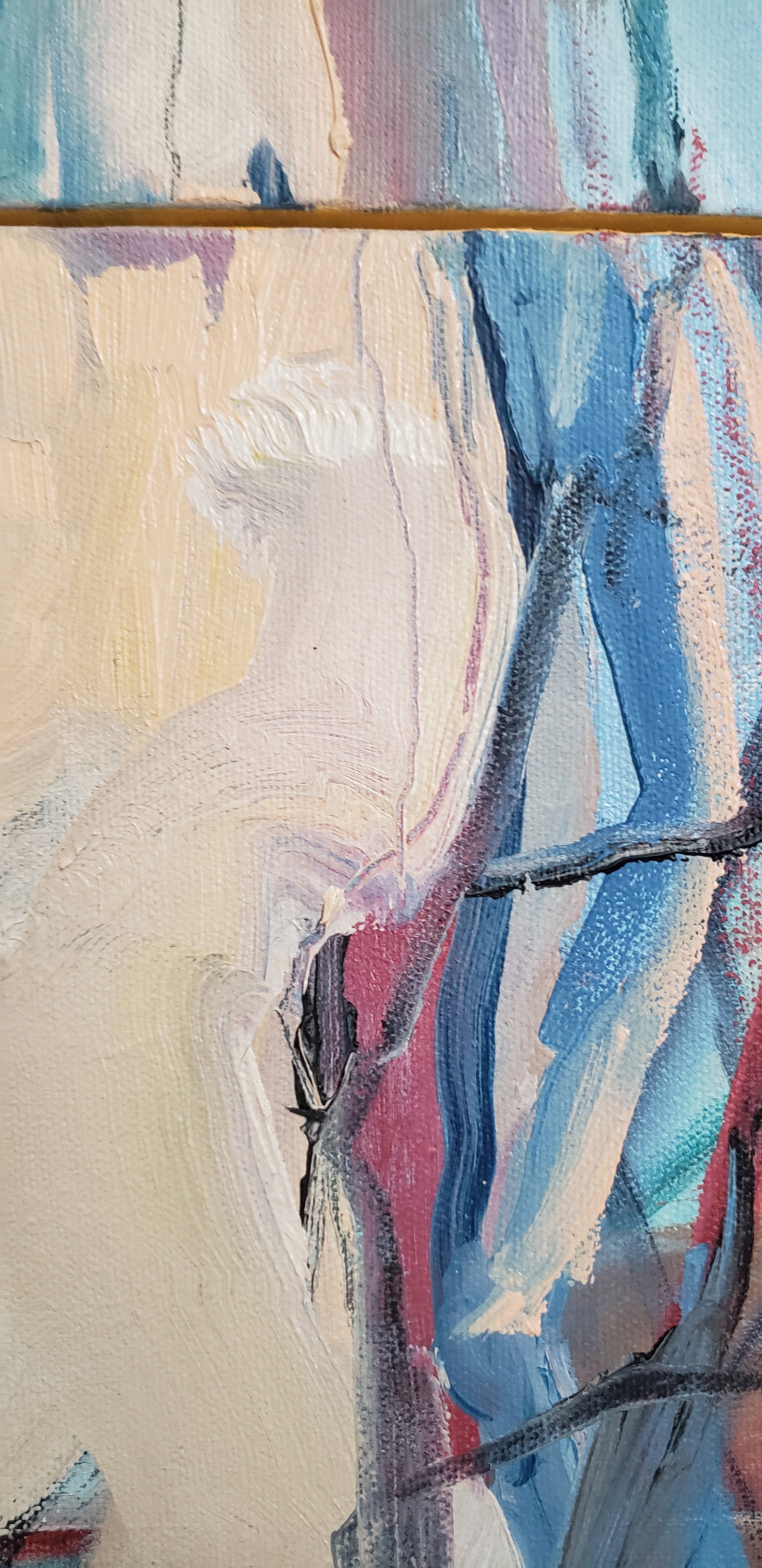 Tour Eiffel is my original abstract expressionist painting, created in 2011 after seeing Willem de Kooning’s retrospective at MoMA—a moment that deeply moved me. With limited resources, I laid gifted pre-stretched canvases on my kitchen floor and painted from the heart. The Eiffel Tower emerged playfully across the panels, its quirky silhouette and bold brushstrokes echoing “Bill’s” spirit. This large oil painting (48 x 44”) is both a tribute to my artistic “father” and a love letter to Paris.