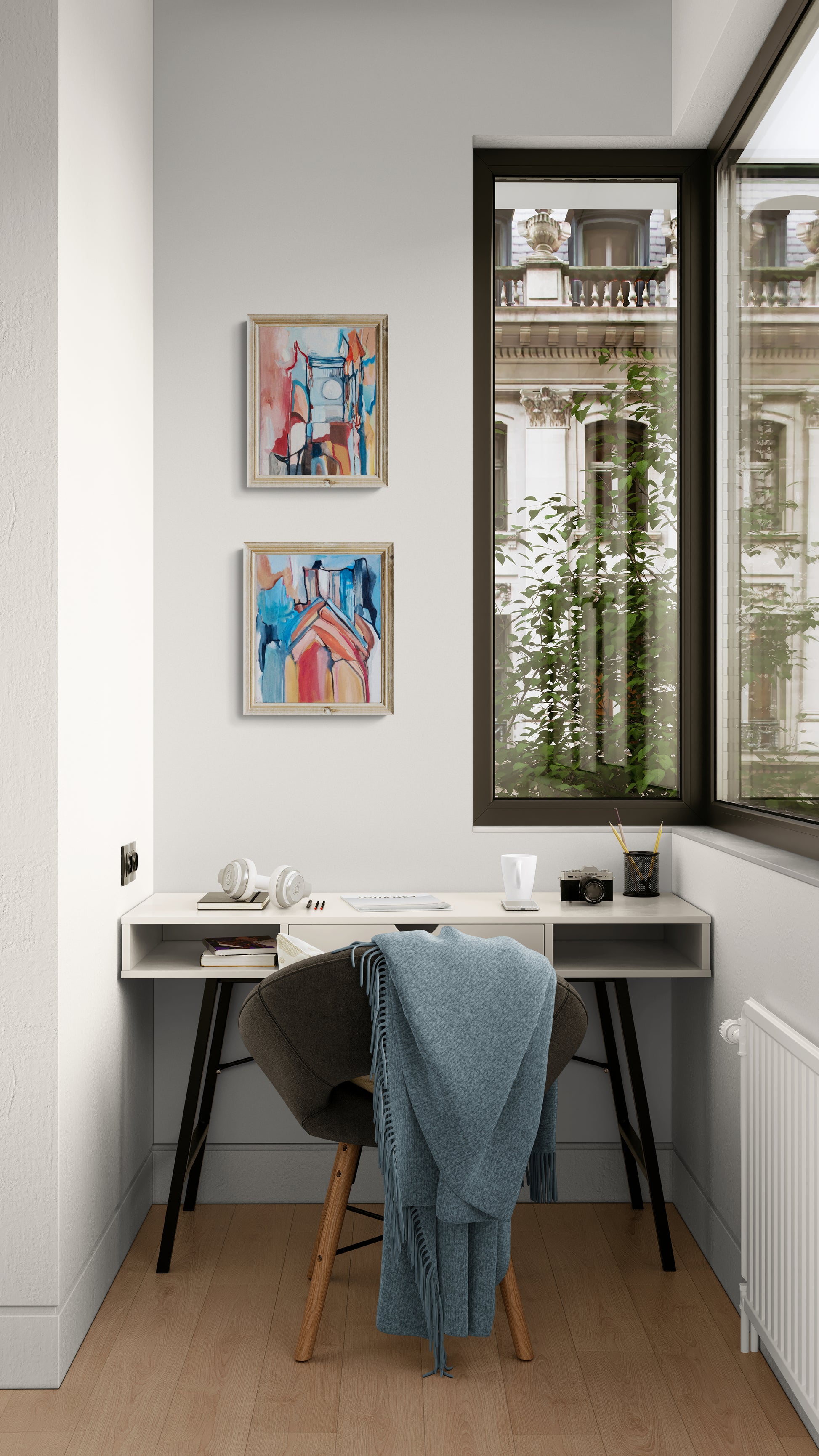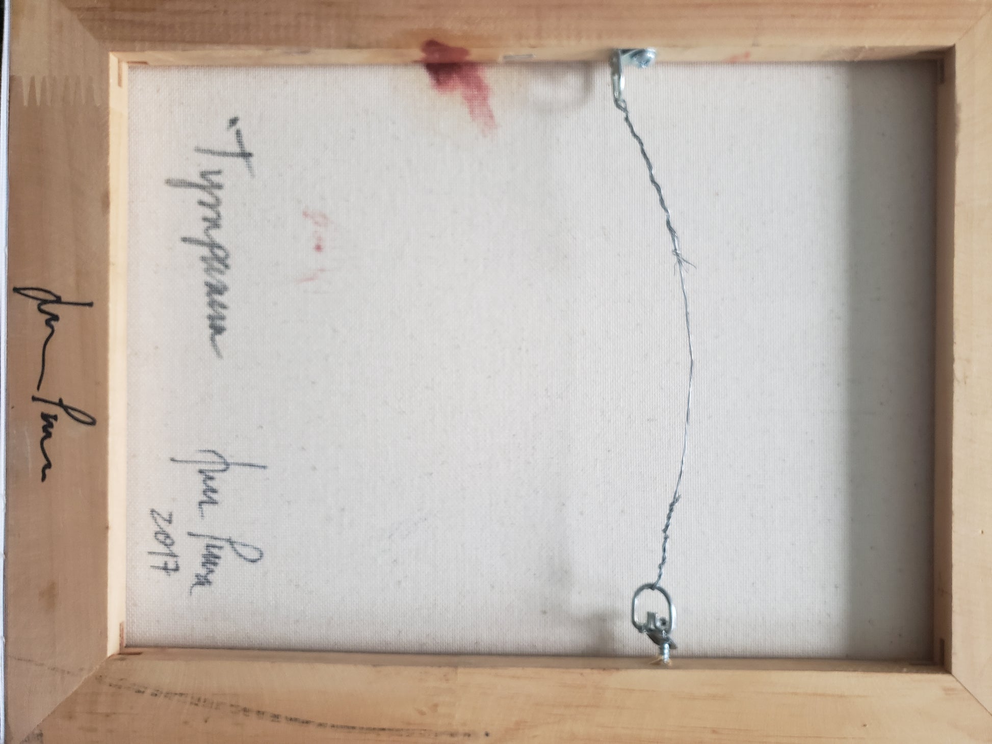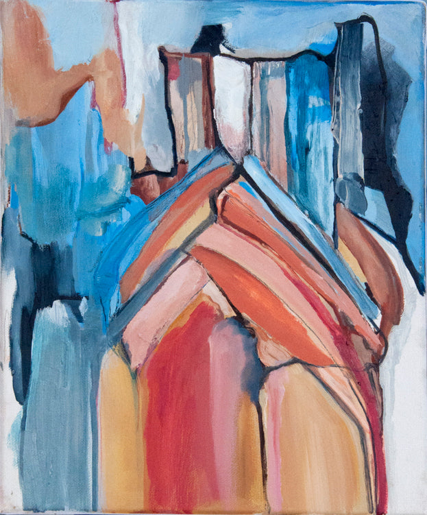 Tower, Notre Dame is an abstraction of the Rosetta window in the Cathedral de Notre Dame, painted as an homage to the glorious centerpiece of Paris and the faith-filled hands of the medieval Parisians who built it. This oil on canvas was created alongside Tympanum, its twin in size and spirit—two works exactly the same size, lovingly married in my heart and meant to remain together in a loving collection. This modern interpretation is my meditation on the light and geometry of that holy place. It is an offering of architectural abstraction that reflects my reverence for this divine icon and my commitment to the creative path God has placed before me.